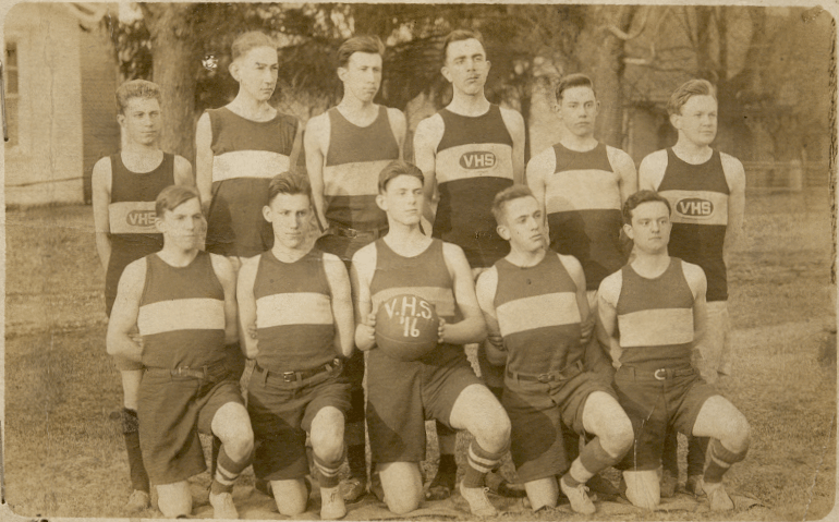 The picture is of the 1916, Versailles High School basketball team. Young man in back row, far left is Guy Herbert Marsh (b. 28, Oct. 1899). Young man in back row second from right is Floyd Gerald Marsh (b. 9, Oct. 1897).