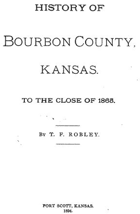 Transcribed from History of Bourbon County, Kansas : to the close of 1865 by T. F. Robley. Fort Scott, Kan.: Press of the Monitor Book & Print. Co., 1894.