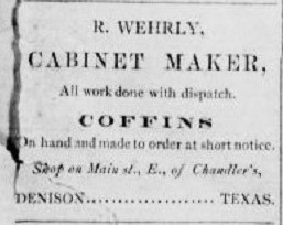 R. Weberly, cabinet maker and undertaker, has a shop on Main street,