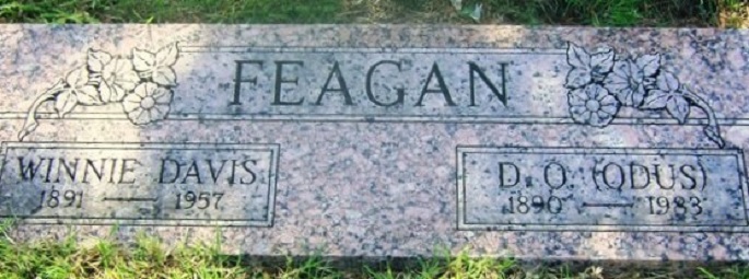 ![]() Winnie Davis Feagan 1891 - 1957 D.O. "Odus" Feagan 1890 - 1983 The Whitewright Sun Thursday, December 12, 1957 pg. 1 Sherman Democrat Sunday, December 8, 1957 Funeral services were held at 2:30 p.m. Sunday at the Tom Bean Church of Christ for Mrs. D.O. Feagin, 66, of Tom Bean who died in a Sherman hospital at 5:15 a.m. Saturday following a heart attack several hours earlier; Connie Hollis, minister of the Leonard, Texas Church of Christ conducted the services. Burial followed in Holloway Cemetery, directed by Waldo Funeral Home. Pallbearers were Claude Lackey, Morris Pennell, Spurgeon Teague, Wyatt Griffin, Carlyle Bell, and Lewis Nash.. Mrs. Feagan was born in Grayson County, a daughter of Mr and Mrs. Walter and Susan Davis. She was married November 17, 1915 to D.O. Feagan. She attended Cordell College, Cordell, Oklahoma in 1913 and 1914. Surviving are her husband; 2 sons, Lester Howard Feagan and William Daniel Feagan of Tom Bean; 3 sisters, Mrs. Grantland Ball and Mrs. Ernest Gann of Tom Bean; and Mrs. Earl Hill of Sherman; a brother, Russell Davis of Tom Bean; 2 half-sisters, Mrs. Cleo E. Jones of Snyder, Oklahoma; and Mrs. Cecil Field of Morenci, Arizona; a half-brother, Hebron Davis of Sherman; 3 grandchildren; and several nieces and nephews. Sherman Democrat Sunday, October 30, 1983 Tom Bean - Funeral services for D.O. Feagan, 93, who died Friday in a Whitewright nursing home were held at 2 p.m. Sunday in the Church of Christ of Tom Bean. Burial was in Holloway Cemetery under the direction of Earnhart Funeral Home. Feagan was born in Pilot Grove, the son of Mr. and Mrs. Daniel Feagan and married Winnie Davis, November 17, 1915 in Grayson County. He was a member of the Masonic Lodge of Whitewright and of the Tom Bean Church of Christ. He is survived by 2 sons, Howard and Dan of Tom Bean; a sister, Zora Bullard of Savoy; 3 grandchildren and 4 great-grandchildren. ![]() Holloway Cemetery Susan Hawkins © 2024 If you find any of Grayson CountyTXGenWeb links inoperable, please send me a message. |