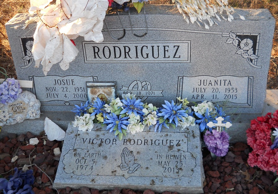 ![]() Whitesboro ![]() Josue Rodriguez 22 November 1951 - 4 July 2000 Juanita Rodriguez 20 July 1953 - 11 April 2015 wed 18 April 1971 Victor Rodriguez 5 October 1974 - 25 May 201 ![]() Oakwood Cemetery Elaine Nall Bay ©2017 If you find any of Grayson County TXGenWeb links inoperable, please send me a message |