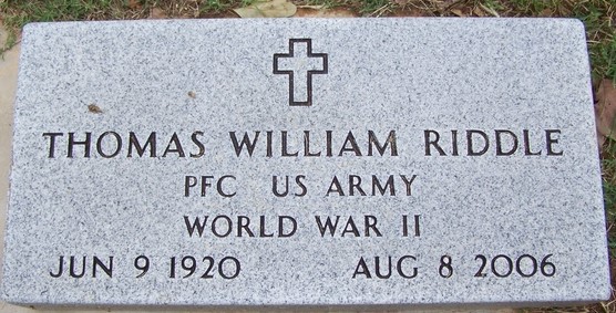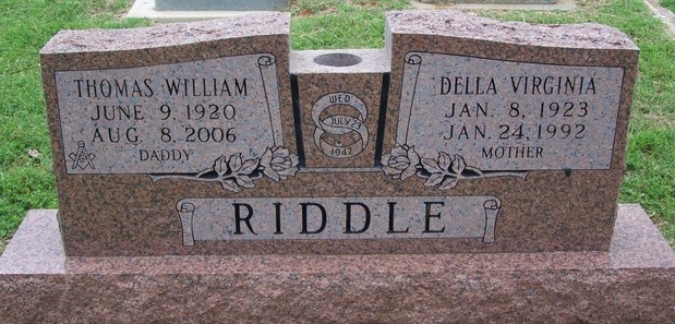 ![]() Whitesboro ![]() Thomas William Riddle 9 June 1920 - 8 August 2006 Della Virginia Riddle 8 January 1923 - 24 January 1992 wed 23 July 1942 ![]() Della Virginia Sissney Brothers: Hubert Lee & John Wesley Parents: Charlie Thomas & Claudia Sissney