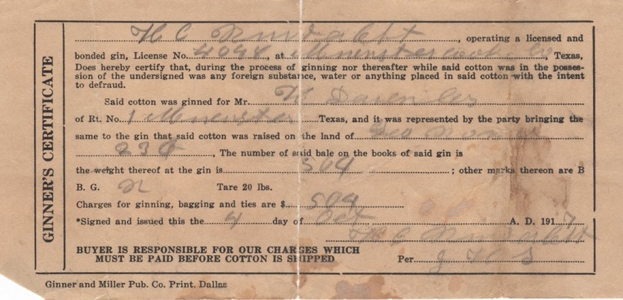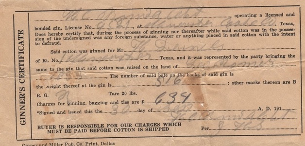 Cotton Bale Receipts