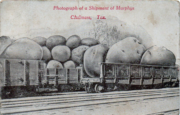 Photograph of a Shipment of Murphys Chalmers, Tex. Exaggeration cards were popular in the early 1900s.