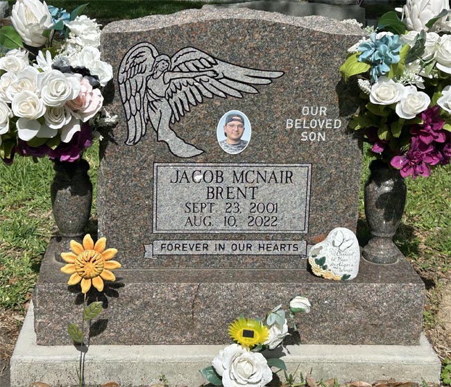 On September 23rd, 2001, a precious baby boy was born in Bay City, Texas, to James McNair Brent and Olivia Mary Brent. On August 10th, 2022, Jacob McNair Brent, our much-loved son, brother, grandson, nephew, cousin, and friend left his heartbroken earthly family to reunite in heaven with his aunt Jessica Yates Wooten and his DanDan Joe Brent. Jacob was an intelligent, talented, and caring young man who had the God given potential to accomplish anything he put in his mind to do. His beautiful soul matched his heart of gold. Jacob was a trusting and loving child of God who loved his family and friends unconditionally. Those in his life knew that they could always rely on him to be there for them. Jacob was a selfless giver and would help anyone. We who dearly loved him, have been blessed for having had our sweet Jacob in our lives. The reason we feel such profound loss is because we had such a profound blessing. Survivors include his mother Olivia Brent; father James Brent; sister Lindsay Lynnanne Brent; brother Jared Adam Brent; grandparents Dorothy Yates, Jamie Brent and Larry Gipson; Aunt Eva Brent Prieto, uncle Eric Prieto, cousins Ethan Prieto, Maddie Prieto, Aubrey Prieto, Uncle Chris Yates and cousins Lauren Yates and Christopher Yates; Great aunt Shirley Garrison, Great uncle Doug Garrison and Great uncle Louis Redinger . Visitation will begin at 1:00 PM Wednesday, August 17, 2022 at His Grace Assembly of God; 109 W. 7th St.; Sweeny, TX 77480. Funeral service will begin at 2:00 PM. Interment will follow at Cedarvale Cemetery in Bay City. Pallbearers will be Jared Brent, Eric Prieto, Ethan Prieto, Brayden Gesford, Michael Henderson, and Jacob Brooks. Taylor Bros. Funeral Home Photo courtesy of Faye Cunningham