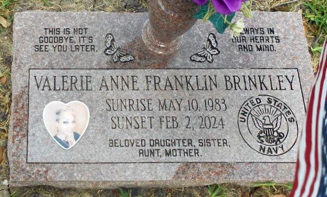 Valerie Anne Franklin Brinkley, 40, of Bay City passed away February 2, 2024. She was born in Bay City on May 10, 1983. Valerie was a 2001 graduate of Bay City High School. She joined the US Navy straight out of high school and started her journey. She served her country for two years, then returned home and started a lasting and loving journey of motherhood which she loved with all she had. Valerie was also a traveling CNA. Her passion was always helping and caring for people. She loved fashion, shopping, cooking, dancing and just having fun and taking pictures. She also loved being a beauty consultant. She could light up a room with her presence, but most importantly she loved the lord. Survivors include her parents Isabel Huerta and Luther Franklin; children Ariana Brinkley and Vincent Brinkley, Jr.; brothers Robert Lee Franklin (Jennifer), Curtis Wayne Franklin (Crystal), Noah Zboral and Jarred Spann; step siblings Rebecca, Michelle, Michael, Olivia, Victoria, Sheila, Terry, Jerry, Gary and two she called her “Special Seesters” Bethany Garcia and Lenora Castaneda; best friend Stephany King and several nieces, nephews, cousins, aunts and uncles. She was preceded in death by grandparents Valeria Chavez, Dorothy Deloach and Jerry Bryant, Sr. Visitation will begin at 1:00 PM Saturday, February 17, 2024 at Nichols Street Church of Christ. Funeral service will be at 2:00 PM with Joe Deloach officiating. Interment will follow at Cedarvale Cemetery. Pallbearers will be Robert Franklin, Curtis Franklin, Robert Franklin, Jr., Michael Franklin, Justin Stanford and Terry Bryant. Honorary pallbearers will be Lawrence Rodriguez, Aiden Ballesteros, Luis Ballesteros, Curtis Franklin, Jr., Carson Franklin and Vincent Brinkley, Jr. Taylor Bros. Funeral Home Photo courtesy of Faye Cunningham