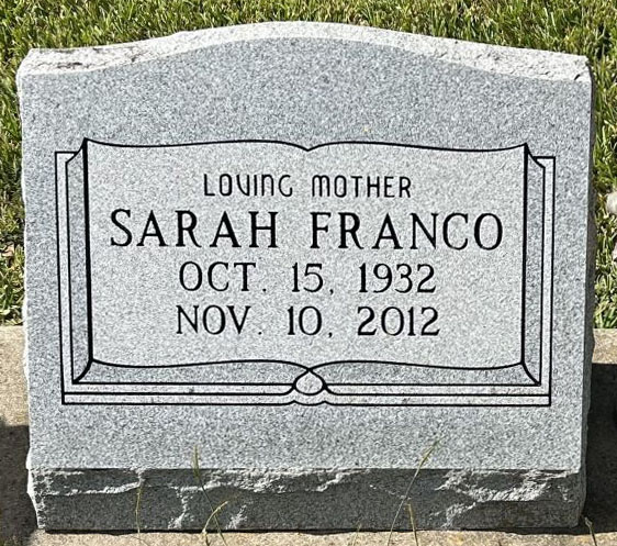 Sarah Zepeda Franco, 80, of Bay City passed away November 10, 2012. She was born October 15, 1932 in Bay City, TX to the late Guadalupe Zepeda and Lena Blanco Zepeda. She and her husband owned and operated Franco’s Restaurant and other businesses for many years. Her husband Raul Franco, Sr. and son Raul Franco, Jr. both preceded her in death. Survivors include daughters Rachel Solis & husband Ruben of Richwood, TX, Ruth Franco of Bay City, Rebecca Ortiz & husband Manuel of Bay City, Ruby Franco of Bay City, Sylvia Bartley & husband Gary of Brazoria and Marty DeCarlos & husband Jose of Sweeny; sisters Martha Lopez of Bay City & Ruth Orasco of Corpus Christi; brothers Paul Zepeda of Houston & Isaac Zepeda of Bay City; grandchildren Felecia Neubig, Jason Reams, Jonathan Rodgers, Michael Ortiz, John Rafael Sanchez, Elias Sanchez, Jr., Richard Cortinas, Jr., Raul Franco III, Sean Franco, Crystal Martin, Sylvia Teeple, Manuel Sosa, Anthony Paul Sosa & Andrew Sosa and numerous great grandchildren. A rosary will be recited at 6:30 PM Wednesday at the funeral home. Mass will be 10:00 AM Thursday, November 15, 2012 at Our Lady of Guadalupe Catholic Church with Rev. Gerry Cernoch officiating. Interment will follow at Cedarvale Cemetery. Pallbearers will be Nick Stillwell, Robert Thompson, Stephen Baker, Jonathan Rodgers, Jason Reams & Michael Ortiz. Honorary pallbearers will be Ruben Solis, Manuel Ortiz, John Sanchez, Jordan Cantu, Sonny Ware, Matt Lawhon, Gary Mathis & Elias Sanchez, Jr. Taylor Bros. Funeral Home Photo courtesy of Faye Cunningham