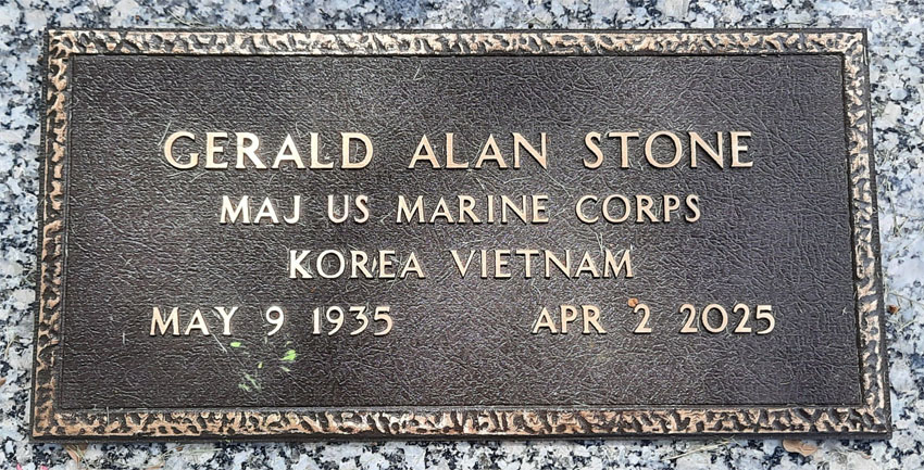 Major Gerald A. Stone (Gerry), USMC Retired, age 89, passed away peacefully on April 2, 2025, surrounded by family at his home in West Columbia, Texas after struggling with various illnesses related to Agent Orange exposure from the Vietnam War. Gerry is survived by the light and strength of his life, Elaine, his wife of 66 years. Gerry and Elaine (an Army veteran) met in 1958 while both were stationed at HQ, US EUCOM, Paris, France and married in 1959. Other survivors include his son Gerald Stone Jr. and spouse Esther of Bay City, TX; daughter Terri Daugherty and spouse Kevin of Pagosa Springs, CO; sister Marge Bunschoten of Frisco, TX; his three grandchildren Michael, Shannon, and Joseph; and three great grandchildren, Julian, Jordynn, and Emalee. His is further survived by his loving sister-in-law, Carolyn and numerous relatives and friends. Gerry was born May 9, 1935, in Kalamazoo, Michigan and his formative years were in Vicksburg, Michigan. After graduating high school, Gerry enlisted in the U.S. Marine Corps and honorably served his country for 25 years, retiring in 1978. He was a veteran of the Korean War and served 2 tours in Vietnam. During his honorable career he was promoted through the ranks from Private to Major, an uncommon progression referred to in the Marine Corps as a “Mustang.” He earned numerous medals and citations during his service including two Navy Commendations with Combat “V” for valor for his service in Vietnam. Gerry’s next career was with Virginia Power in the Nuclear Power Division, retiring after 20 years as Supervisor of Nuclear Materials at North Anna Nuclear Power Station. Upon Elaine’s retirement from her career as an accountant for the Department of the Navy, Gerry and Elaine moved to Texas in 2005. Gerry was a member of several military organizations including the Military Officers Association, Marine Corps Mustang Association, and the Veterans Association. He was a charter member of the Marine Corps Heritage Foundation. Gerry’s passion in life was fishing and boating. He particularly enjoyed deep sea fishing in the Chesapeake Bay in Virginia and the Gulf of Mexico after moving to Texas. He also enjoyed playing golf with his spouse and friends. Gerry’s extreme attention to detail lent itself to building intricate replicas of ships and World War I and II era airplanes. He had a natural ability to build and fix just about anything and enjoyed helping anyone who needed his assistance. A remembrance of life ceremony will be held Friday, April 11, 2025 at Taylor Bros. Funeral Home, 2313 Avenue I in Bay City. Visitation will begin at 9 a.m. with the service starting at 10 a.m. In lieu of flowers, Gerry requested donations be made in his memory to the Marine Corps Heritage Foundation, Gift Processing Center, PO Box 96628, Washington D.C. 20090. Gerry will be laid to rest at the Cedarvale Cemetery in Bay City, Texas. Taylor Bros. Funeral Home Photo courtesy of Faye Cunningham