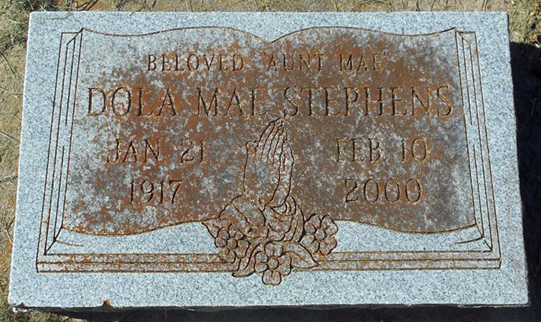 Bay City—Dola Mae Stephens, 83, of Bay City, died Thursday, Feb. 10, 2000. She was born Jan. 21, 1917, in Matagorda County, to the late Willis and Camilla Banning Monroe. She was a homemaker. Survivors: stepdaughter, Vernell Stone of Bay City; nephews, Rev. Sam Laddie of Bay City and Lionel Laddie of Houston; nieces, Earnestine Outly of Houston and Hercelia Martin of Bay City. Preceded in death by: parents. Services will be 11 a. m. today at Mother Zion Baptist Church in Bay City, the Rev. K. J. Griggs officiating. Burial will be at Eastview Cemetery in Bay City, Duncan-Roberts Funeral Home, Bay City, (409) 245-5197. Pallbearers and honorary pallbearers: family members, Missionary auxiliaries and laymen. Victoria Advocate, February 14, 2000 Photo courtesy of Faye Cunningham