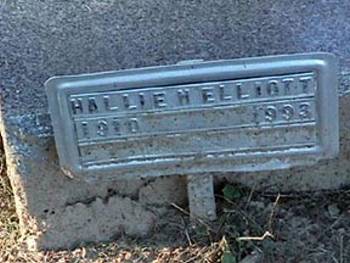 Elliott, Hallie H. 1910 1993 Funeral home marker, leaning against the side of Ardell Garrett tombstone