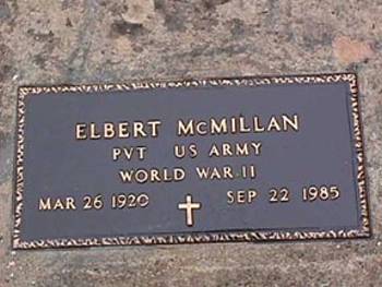 McMillan, Elbert Boots Mar 26, 1920 Sept 22, 1985 Pvt US Army WWII Mason