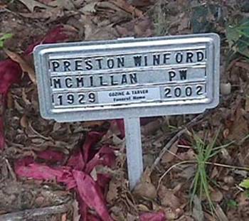 McMillan, Preston Winford Jul 25, 1929 Jun 17, 2002 P.W. funeral home marker