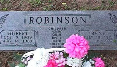 Robinson, Irene July 18, 1915 Oct 18, 1977 Children: Herman, Callie, John L., Ellen, Hubert Jr., Vannie