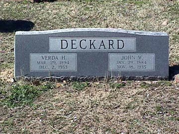 | Deckard | Verda H. | Mar 29 1894 | Dec 02 1953 | w/o John W. |
