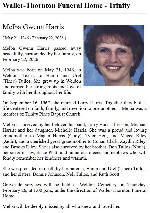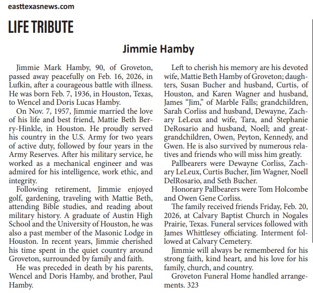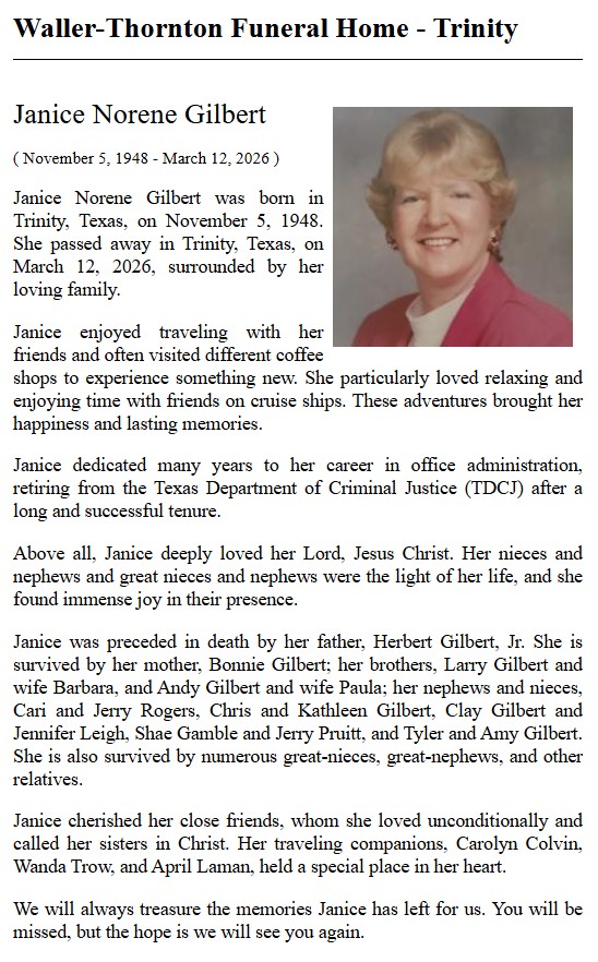 | GALLANT | George Edward | Trinity County News Standard | 3/16/2023 |