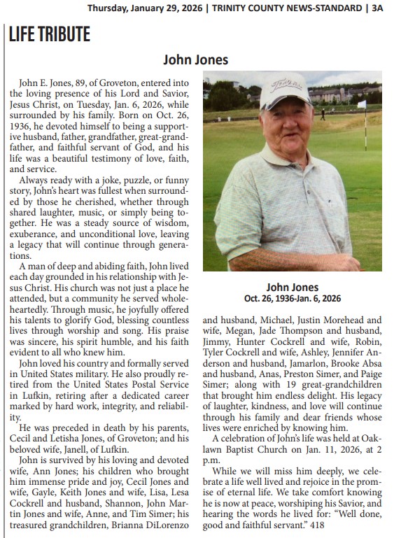 | JONES | Samuel Cecil | Trinity County News Standard | 12/31/2020 |