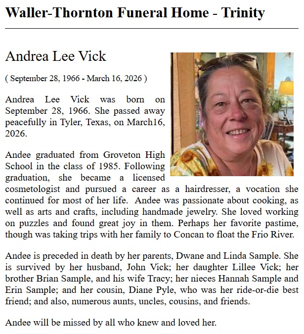 | VARIEUR | Bonnie Glynn Robinson | Trinity County News Standard | 5/26/2022 |