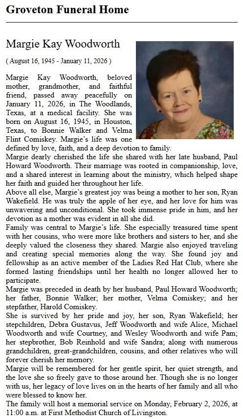 | YARBROUGH | Barbara Faye | Trinity County News Standard | 2/10/2022 |