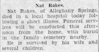 VA. 1936 Death of Nathaniel I. Rakes: 5-1-1936