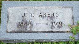 Kanode. 1870 Residence: Montgomery Co., VA, Auburn Twp, P.O. Childress Store, VA, H272: Akers, Joel T. 21 yo w/m farm laborer, b. VA, married in July, cannot read or write, HOH. Amey 21 yo w/f boarding, b. VA, married in July. Charles 65 yo w/m invalid, b. VA. 1880 Montgomery Co., VA, Central Depot, H245: Akers, Joel T. 30 yo w/m works on R.R., b. VA, parents b. VA, cannot read or write, HOH. Amana C. 31 yo wife, b. VA, parents b. VA, keeping house. Minnie K. 6 yo daughter, parents b. VA. Joel 5 yo son, b. VA, parents b. VA. Octavo M. 5/12 daughter, b. VA, parents b. VA. 1883 Marriage #2: Joel T. Akers m. Adaline Rupe 9-6-1883 Pulaski Co., VA. He 28 yo widowed w/m, b. Montgomery Co., VA, s/o C. C. & E. Akers. She 28 yo single w/f, b. Pulaski Co., VA, d/o B. & E. Rupe. Martha Adaline Rupe, d/o B. & Elizabeth (unknown) Rupe. 1919 Death: 2-7-1919 Pulaski, Pulaski Co., VA. 1919 Obit: (src: Find A Grave) Thomas Akers died this morning at 12:20 o'clock at the home of his daughter, Mrs. J.L. Craig, in East Pulaski. His death was due to paralysis, having suffered a second stroke on Wednesday afternoon about 3 o'clock, since which time he rapidly declined. He suffered a stroke about 4 years ago. The deceased was well known in Pulaski county, having lived there in 55 of the 72 years of his life. He leaves to mourn their loss the following adult children: Edward Akers, of Bristol; Mrs. J.J. Morehead and Mrs. J.L. Craig of Pulaski; Mrs. Lizzie Granner, Mrs. Lucy Cutlip, and Miss Gleana Akers of West Virginia. The funeral service will be conducted from the home of his daughter on Saturday afternoon at 3 o'clock, after which the body will be interred in the cemetery at Thornspring.