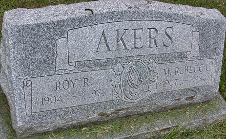 Parents: William Charlton & Mary Jane (Alley) Akers. 1895 Birth: 3-29-1895 Floyd Co., VA. 1900, 1910 Residence: Floyd Co., VA with parents. 1917 Registration Card: Roy Arville Akers, 22 yo single w/m of Carthage, VA, b. Mar 29, 1895 Floyd Co., VA, farmer, his mark witnessed, medium height & build, blue eyes & black hair. 1920 Floyd Co., VA, Indian Valley District, H29: 1921 Marriage #1: Roy A. Akers m. Sadie M. Cox 4-28-1921 Indian Valley, Floyd Co., VA by J. M. Phillips, Minister of the Primitive Baptist Church. He 26 yo single w/m farmer, b. & living in Floyd Co., VA, s/o William & Mary J. Akers. She 23 single w/f, b. & living in Floyd Co., VA d/o L. B. & Louise V. Cox. 1930: 1940 Residence: