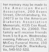 Richmond Times-Dispatch, Richmond, Virginia · Sunday, February 14, 2016 2016 Burial: Washington Memorial Park and Mausoleums, Sandston, Henrico Co., VA.