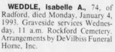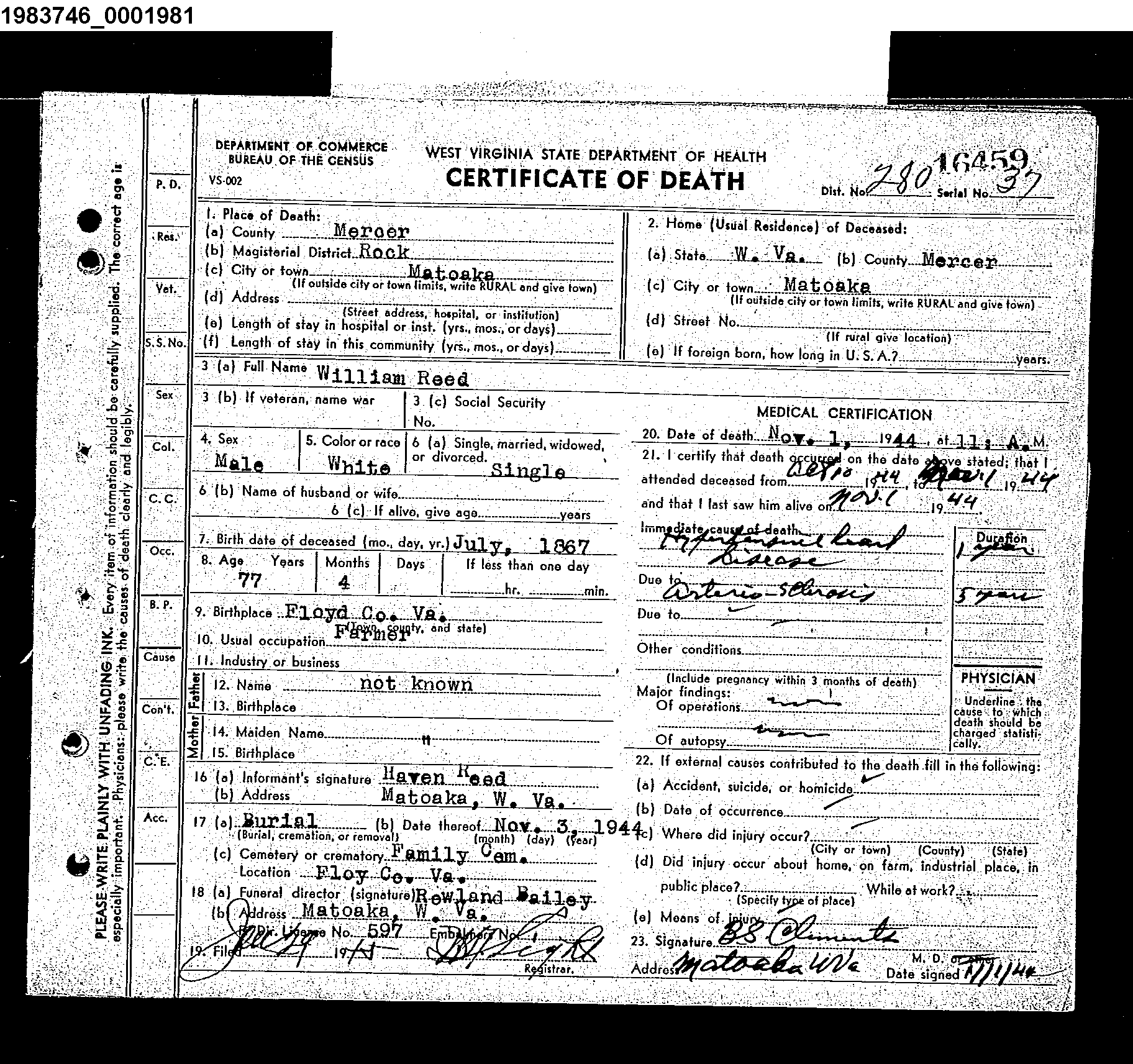 Clinch Valley News and Richlands Press, Bristol, Virginia · Wednesday, January 06, 1982 1981 Burial: Valley Vista Cemetery, Bluefield, VA. (no photo as of Mar 2026) |