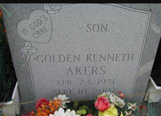 Parents: Fuller Roscoe & Nancy Alice (Akers) Akers 1922 Birth: 1-28-1922 IL. 1930, 1940 Residence: Hancock Co., IL with parents. 1950 Marriage #1: Glen Rose Goldsberry 10-14-1950. Glen Rose Goldsberry, 1924-2024, d/o Ernest Leo & Alma (Wrightsman) Goldsberry. 1998 Death: 11-4-1998. 1998 Burial: Oakwood Cemetery, Hamilton, Hancock Co., IL.