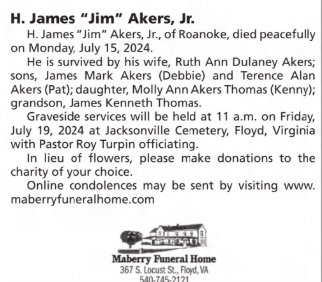 Parents: Woody Isaac & Toye Nettie (Duncan) Akers. 1934 Birth: 1934. 1934 Death: 1934. 1934 Burial: Alley Cemetery, 413 Dulaney Rd NW, Floyd Co., VA. (no photo as of Mar 2026) |