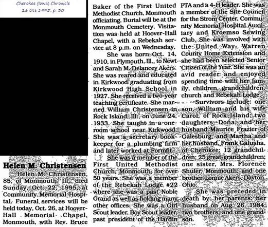 Parents: Fuller Roscoe & Nancy Alice (Akers) Akers 1925 Birth: abt 1925 IL. 1930 Residence: Hancock Co., IL with parents. |