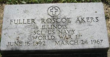 Parents: William Charlton & Mary Jane (Alley) Akers. 1892 Birth: 6-16-1892 VA. 1900 Residence: Floyd Co., VA with parents. 1910: 1917 Registration Card: Henry Clay Akers, 24 yo single w/m of Ferris, IL, b. Jun 16, 1892 Floyd Co., VA, farm laborer, medium height & build, blue eyes & brown hair. 1920 Residence: Floyd Co., VA with parents. 1920 Marriage #1: Roscoe m. Nancy Alice Reed. 12-21-1920 Lee Co., IA. He 29 yo single w/m, b. Floyd, s/o Wm Akers & Mary J. Alley. She 25 yo single w/f, b. Floyd, s/o H. Reed & Lucy Mannon. 1930 Residence: Hancock Co., IL, Rock Creek Twp, H10: Akers, Fuller R. 41 yo w/m farmer, b. VA, parents b. VA, 31 yo when married, rents, HOH. Nancy A. 43 yo wife, b. VA, parents b. VA, 33 yo when married. Jackson 8 yo son, b. IL, parents b. VA, school. John W. 5 yo son, b. IL, parents b. VA. 1940 Residence: Hamilton, Hancock Co., IL, Montebello District 34/20a, H396: Akers, Fuller 52 yo w/m farmer, b. VA, completed G5, resided in Hancock Co., IL 1935, owns, HOH. Nancy 51 yo wife, b. VA, completed G5, resided in Hancock Co., IL 1935, housework. Jackson 18 yo single son, b. IL, completed H1, resided in Hancock Co., IL 1935, school. 1942 Registration Card: cant