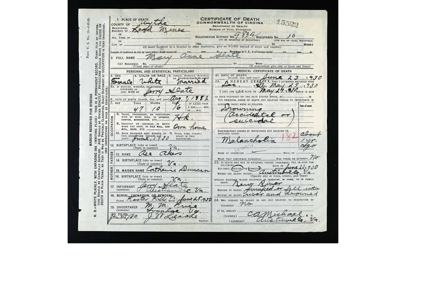 Mary A. 28 yo wife, b. VA, parents b. NC, m. 10y, 3 children with 3