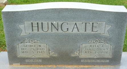 Parents: Joseph & Emily (unknown) Hungate. 1891 Birth: Aug 1891 VA. 1900 Residence: Giles Co., VA with parents. |