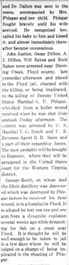 Floyd Co., VA, s/o C. M. & Della Phlegar. She 28 yo single w/f, b. Floyd
