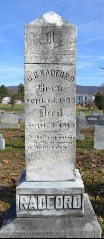 9-3-1919 Middle River District, Augusta Co., VA. Bennett Radford, 63y 9m 21d, mattied w/m railroad man, b. Sept 12, 1855 VA. Father: Ferdnand Radford, b. don’t know. Mother: don’t know.