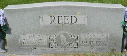 Parents: Sylvester & Ann Eliza (Harris) Reed. 1887 Birth: 11-25-1887 Floyd Co., VA. 1890, 1900 Residence: Floyd Co., VA with parents. 1910 Residence: Pulaski Co., VA with parents. Marriage #1: Mary Purdy, b. 12-2-1887, d. 1-22-1966. 1948 Death: 4-17-1948. 1948 Burial: Sifford Cemetery, Parrott, Pulaski Co., VA. (with Mary Purdy Reed)