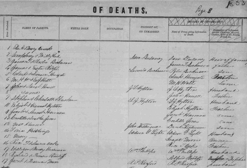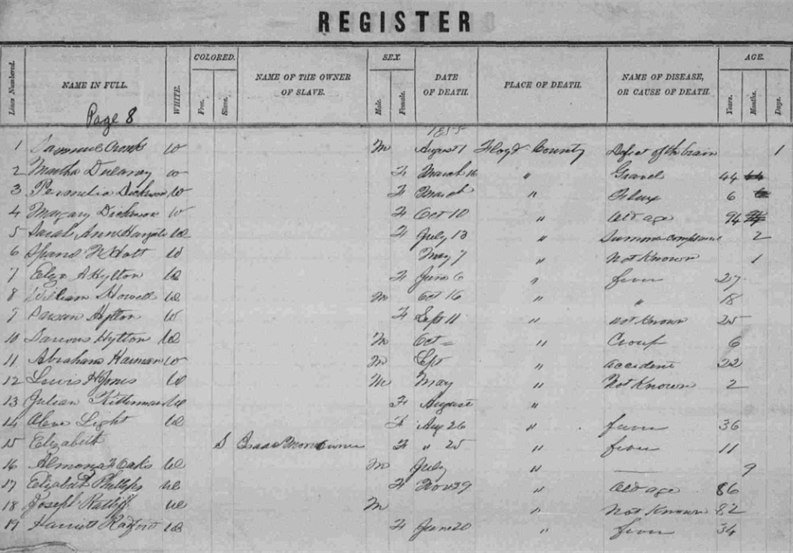 1855 Floyd County, Virginia Death Register