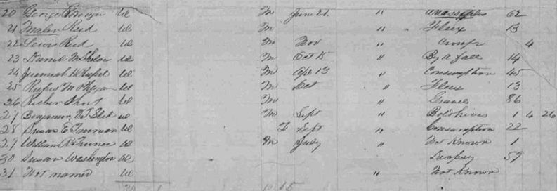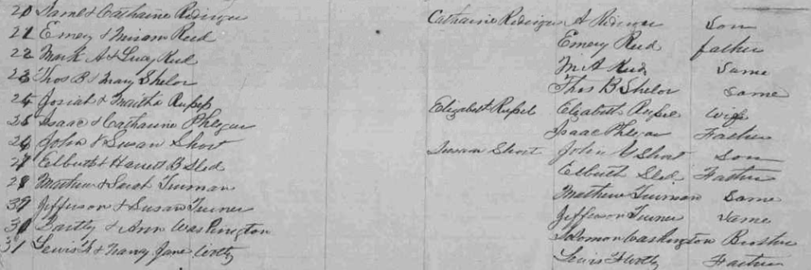 Image 92 Cronk, Samuel Dulaney, Martha Dickerson, Permelia Dickerson, Margary Hungate, Sarah Ann Holt, Sparrel N. Hylton, Eliza A. Howell, William Hylton, Susan Hylton, Dareous {m} Harman, Abraham Jones, Lewis H. Kitterman, Julian Light, Olive Elizabeth, slave of Isaac Moore Oaks, Almons F. Phillips, Elizabeth Ratliff, Joseph Radford, Harriett Ridinger, George Reed, Malon Reed, Lewis Shelor, Daniel M. Russell, Jeremiah H. Phlegar, Rufus M. Short, Rueben Sled, Benjamin W. T. Turman, Susan E. Turner, William R. Washington, Susan Woltz, not named |