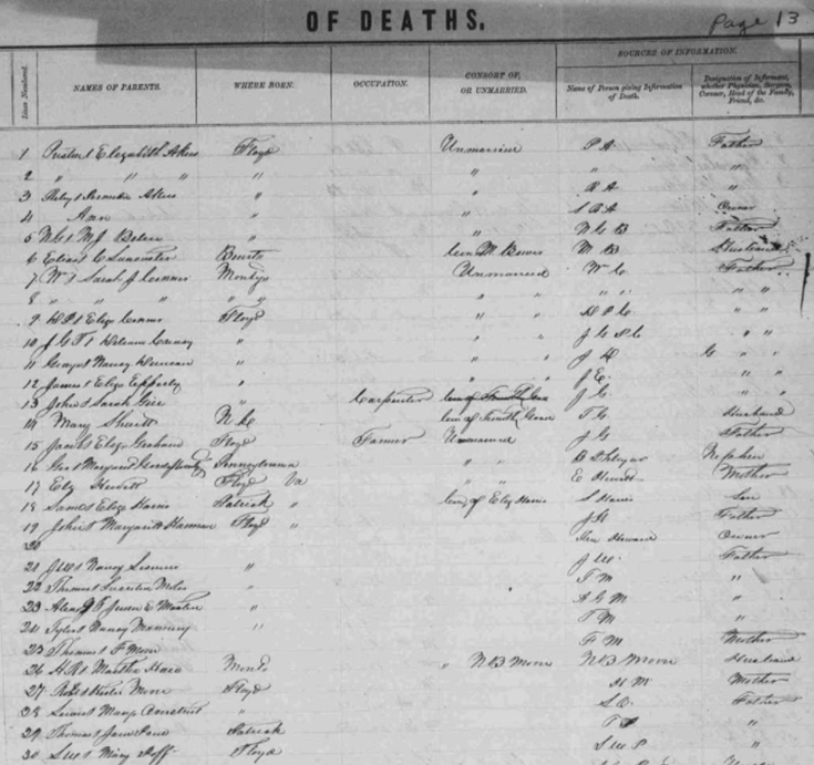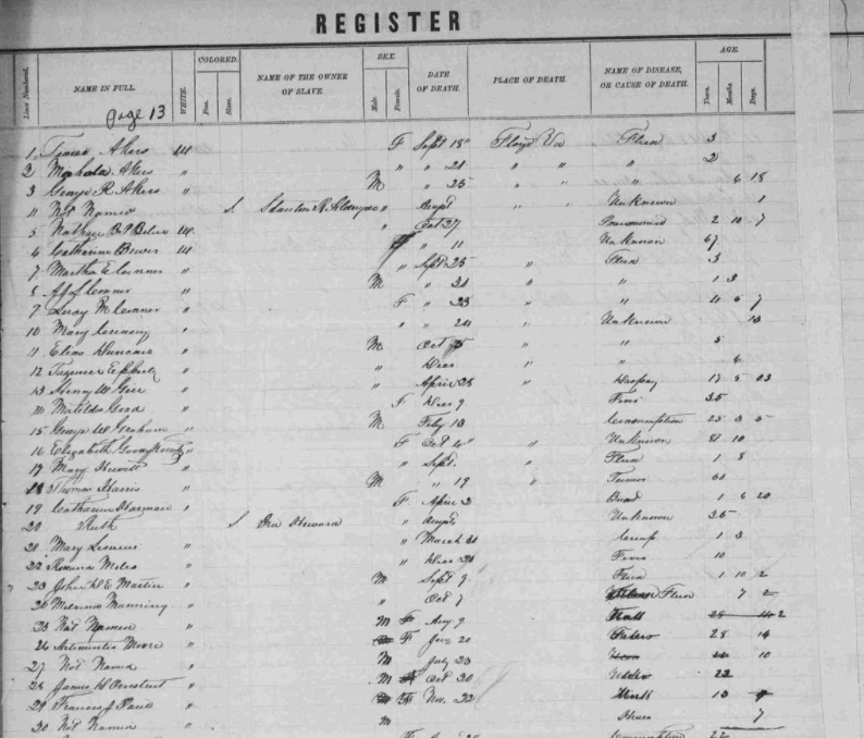 1857 Floyd County, Virginia Death Register