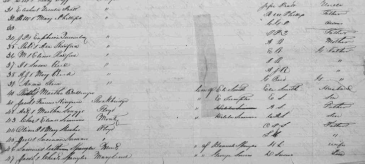 Image 96 Akers, Tinias or Timas Akers, Mahala Akers, George R. not named male slave of Staunton R. Aldredge Bolen, Nathan B. P. Bower, Catharine Conner, Martha E. Conner, A. J. S. {m} Conner, Lucy M. Creasey, Mary Duncan, Elias Epperly, Tazewell Gill, Henry W. Goad, Matilda Graham, George W. Goodykoontz, Elizabeth Hewitt, Mary Harris, Thomas Harman, Catharine Ruth slave of Ira Howard Lesueur, Mary Moles, Roxanna or Rosanna Martin, John D. E. Manning, Melvina Moore, not named male Moore, Artemintia Moore, not named male Overstreet, James H. Paul, Frances J. Poff, not named male Pratt, Mary Ann Phillips, not named male Lucy slave of C. G. Flincham Quesenberry, Mary E. Radford, not named male Radford, Susan E. Reed, George Reed, Jonathan Reed, Susana Smith, Lucinda Sumpter, Elizabeth Scaggs, Ureus Simmons, Thomas W. Slusher, Jacob M. Sumner, Charles B. Spangler, Wm H. Sowers, Elizabeth |