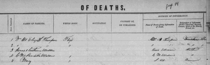1960 as 1858. Transcribed Death record, presumably from image below: 1857