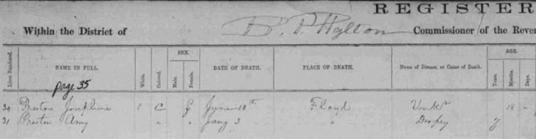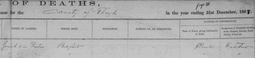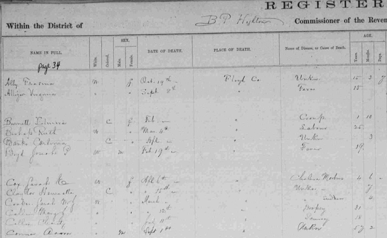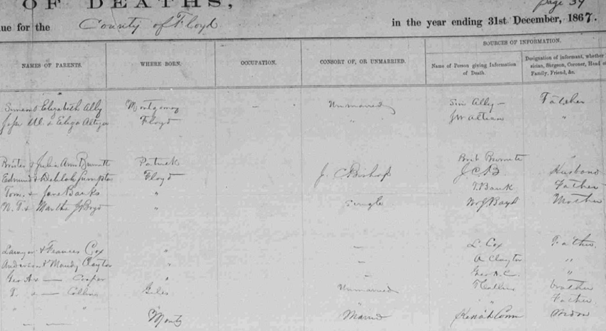 1867 Floyd County, Virginia Death Register