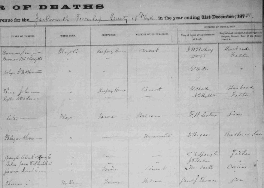 Jacksonville NOTE: All of these were reported in 1871 with just