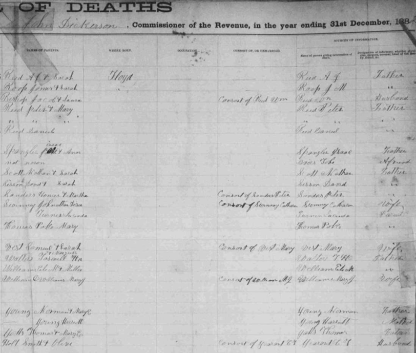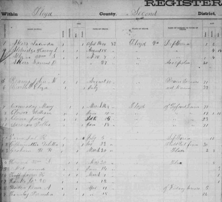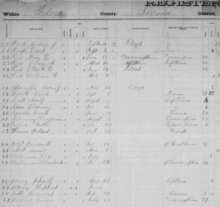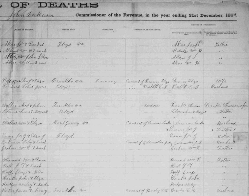 1882 Floyd County, Virginia Death Register