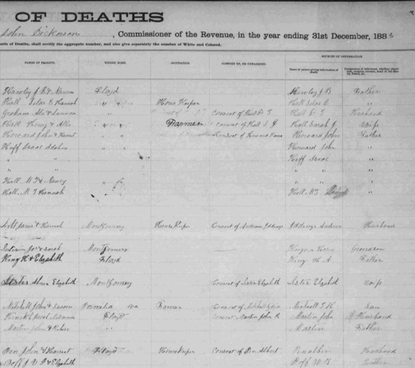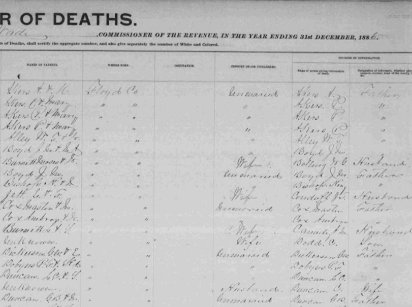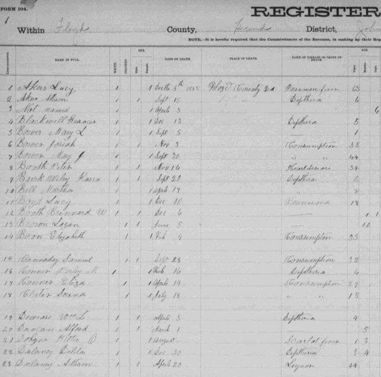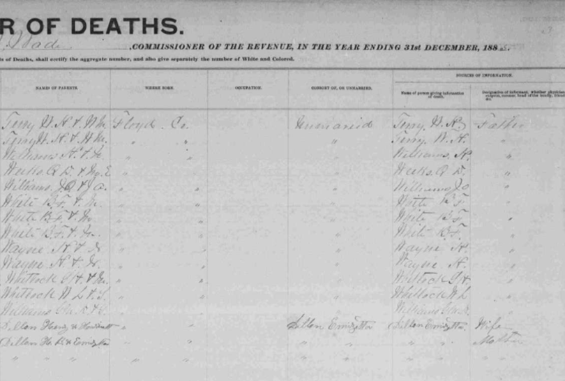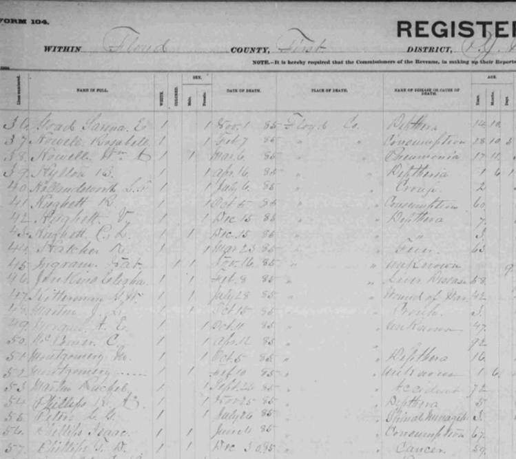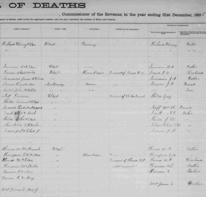 1885 Floyd County, Virginia Death Register