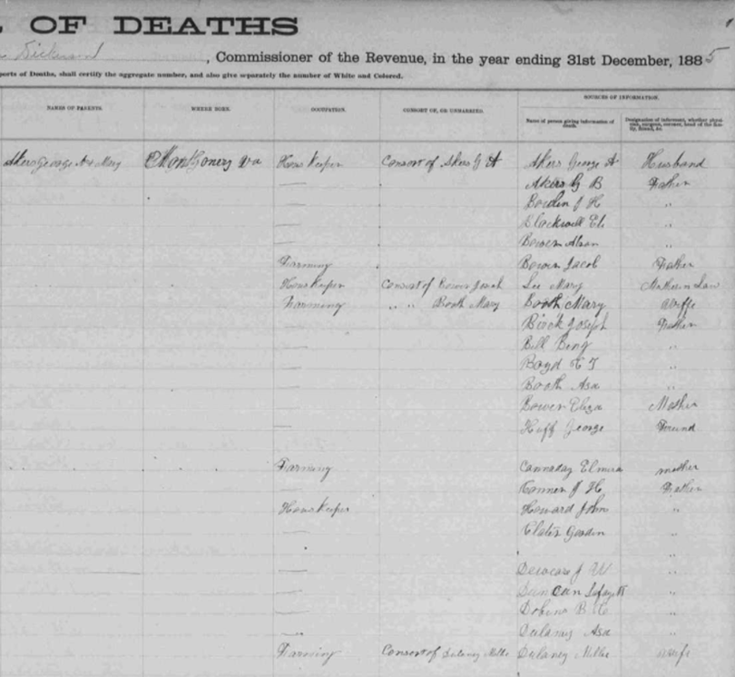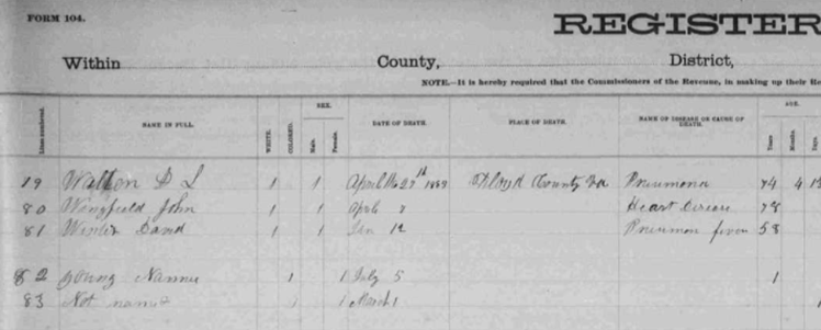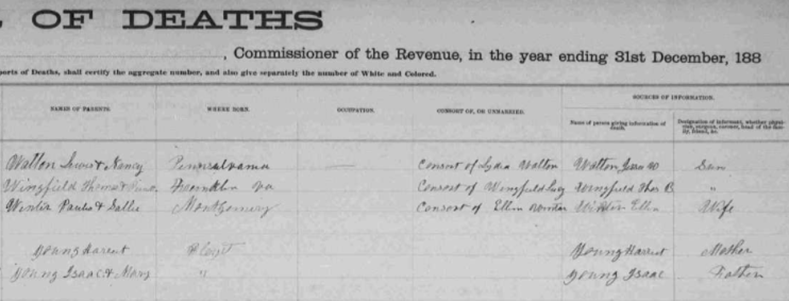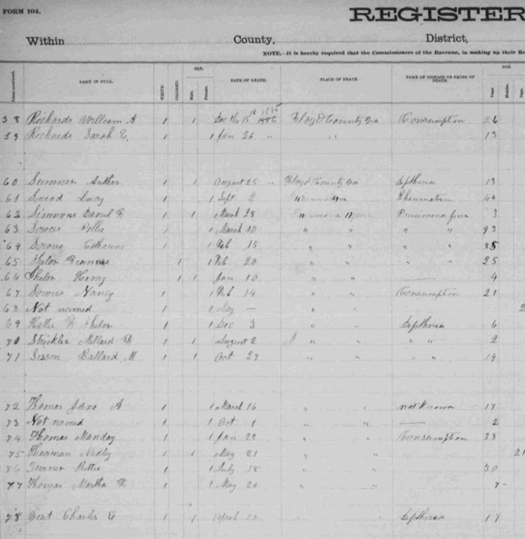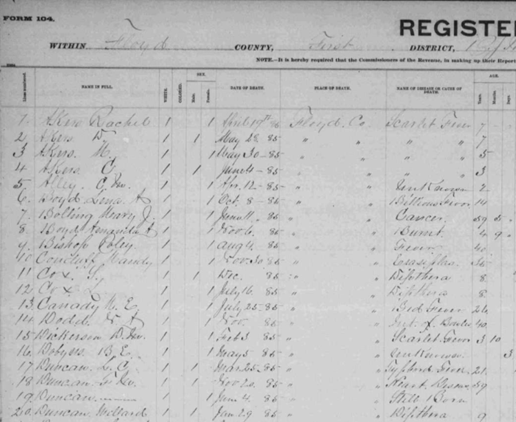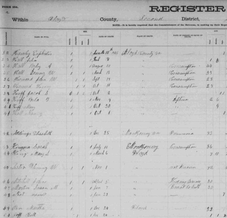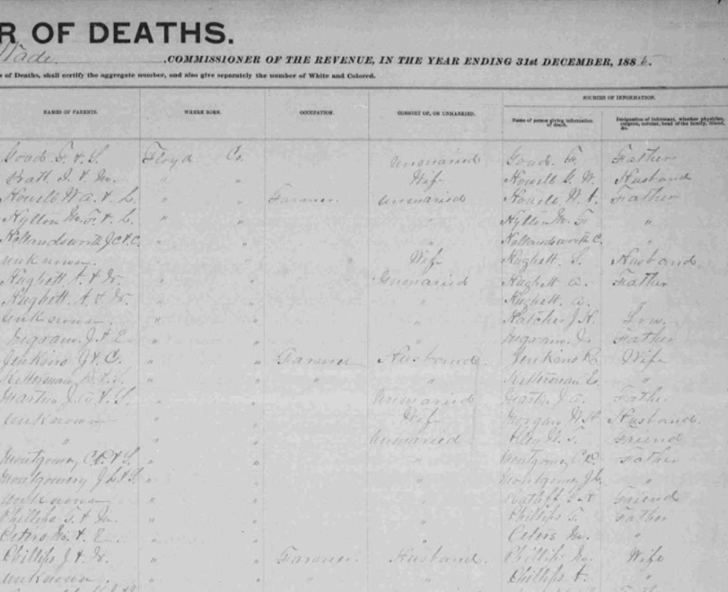 1885 Floyd County, Virginia Death Register