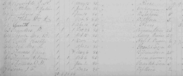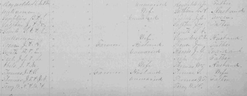 1st District Image 180 Terry, W. M. {f} Terry, W. G. {m} Williams, C. {m} Weeks, Lula Williams, G. A. {f} White, L. A. {m} White, S. M. {f} White, B. E. {m} Wayne, J. W. {m} Wayne, G. F. S. {m} Whitlock, Zannie? {f} Whitlock, J. W. {m} Williams, not named male Dillon, Henry B. Dillon, John Peyton Dillon, Mary Emma |