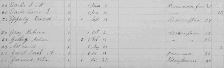 Carrie S. Epperly, David Gray, Rebecca Guthrey, Julian Galaspey, not named female Grant, Sarah A. Garrand, Peter |