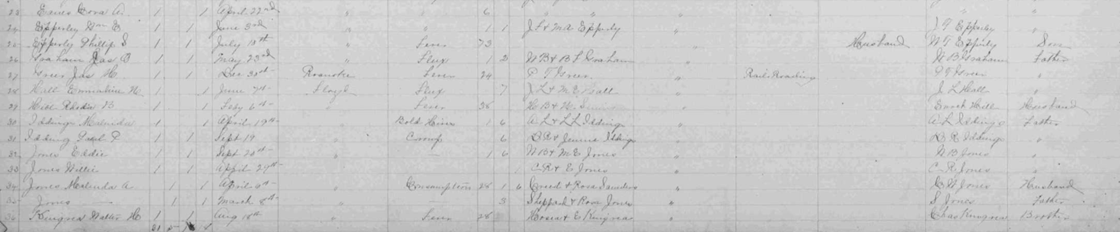 2nd District Image 229 King, Hosea King, Elizabeth E. Kelley, Elmer E. Kelley, Ellen King, Ocie Lester, Edgar W. Lester, Jno W. Martin, Jno H. Moran, Francis {f} McNiel, Margrett C. McNiel, Geo C. Mangus, Delilah E. Mannon, Francis {f} Martin, Iola M. C E. Martin, Nancy Otey, C. T. {m} Poff, D. P. {m} Predue, Maynard Poff, A. L. {f} Reynolds, L. T. Scaggs, Martha Smith, not named male Smith, not named male Sowers, Nancy E. Strickler, Nancy Turner, Lucinda Turner, Mary Thompson, Mary C. Wimmer, A. E. {f} |