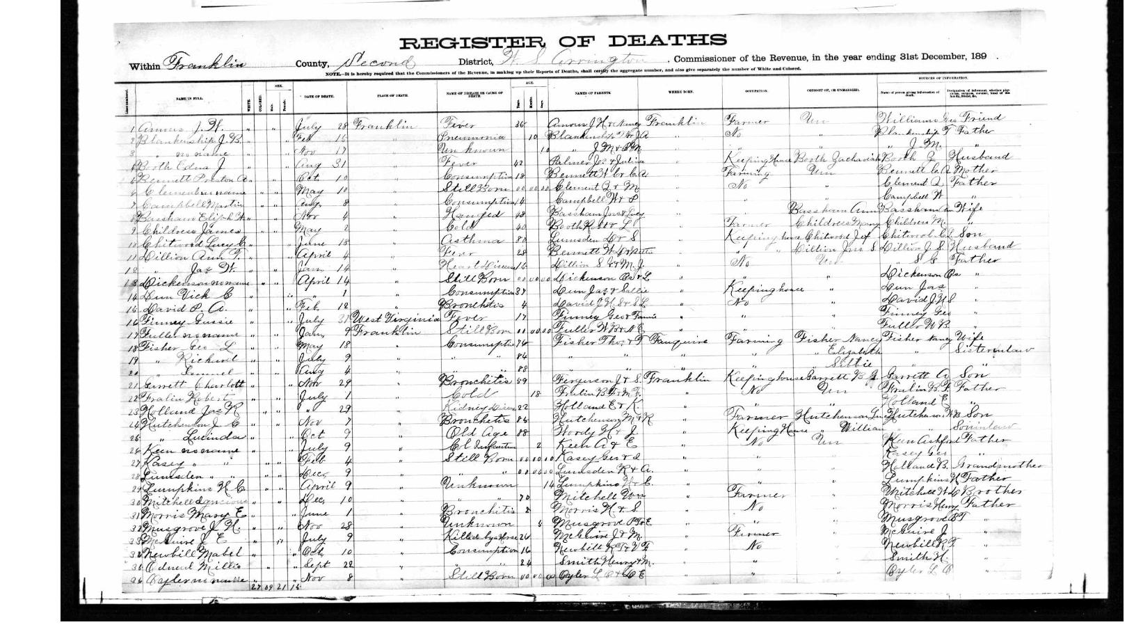 (unclear) Graham. [1898 VA Death Certs – n/a] [Graham_JohnS_Elizabeth]